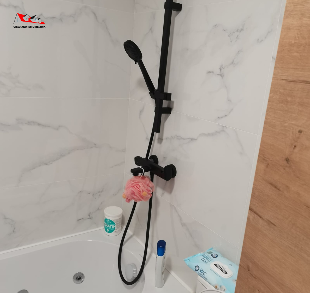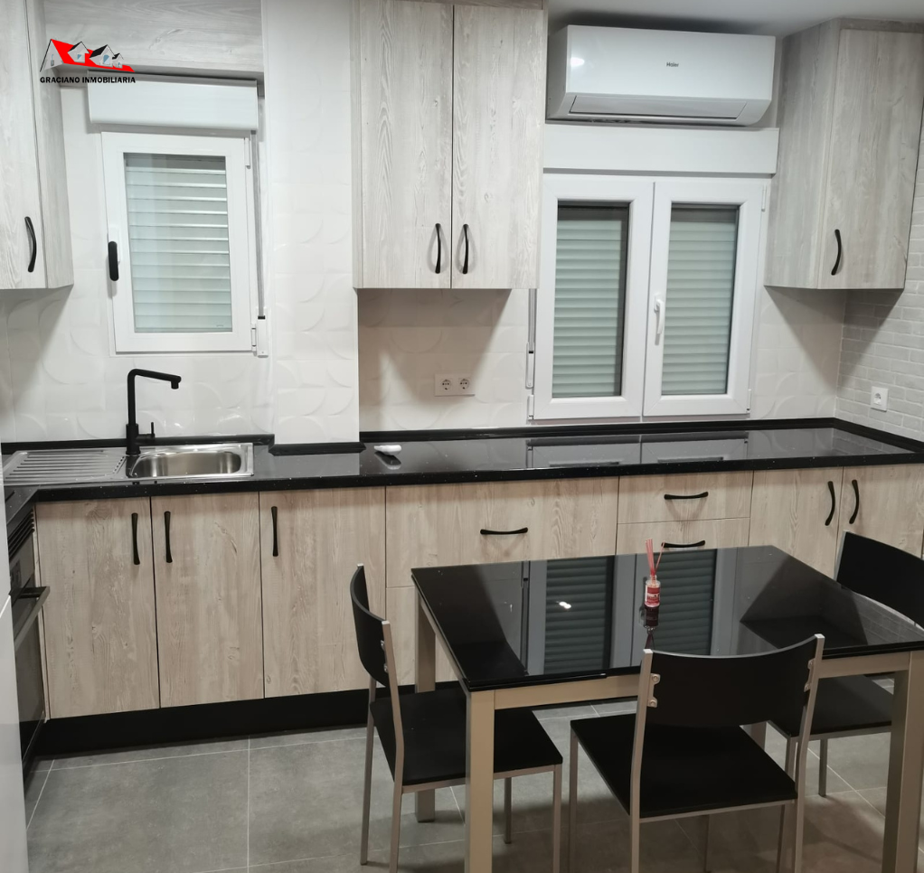 Dispone de split de aire acondicionado con bomba de calor, ventanas climalit oscilobatientes, suelos de gres porcelánico, puerta blindada, puertas interiores de roble y termo eléctrico.