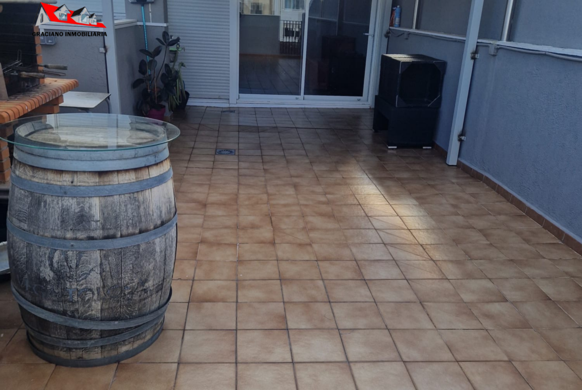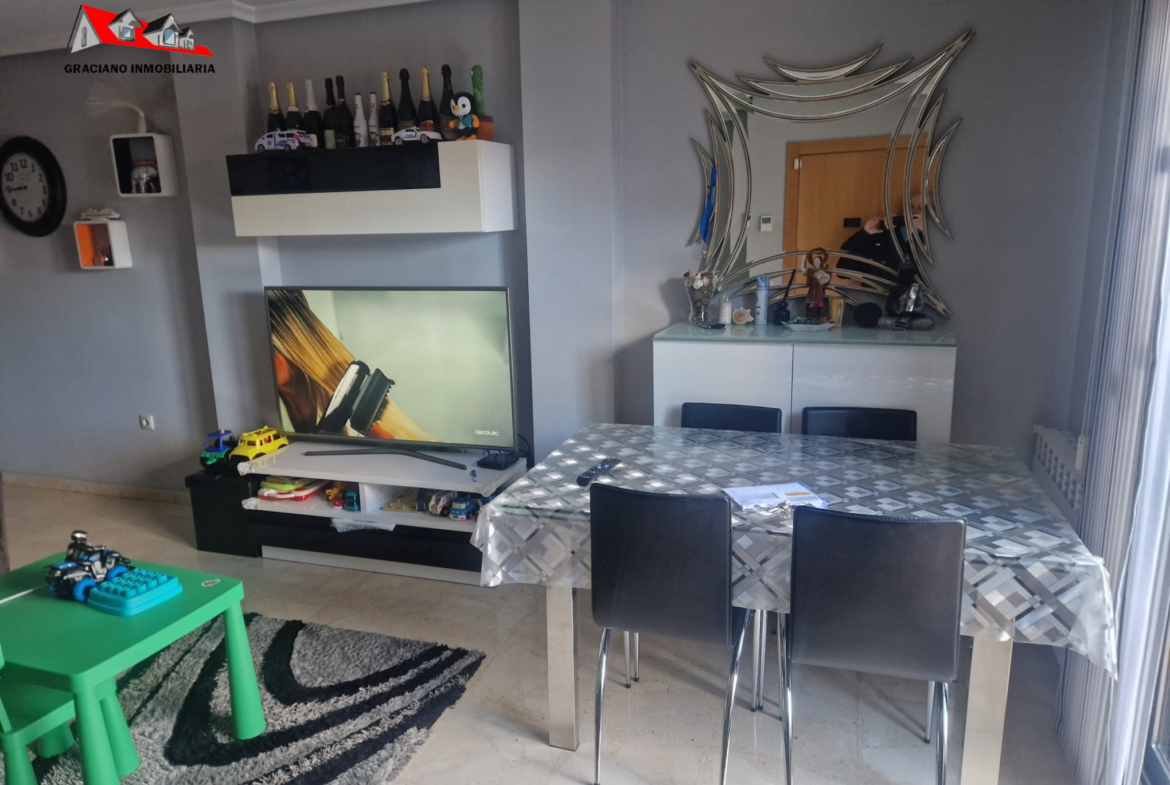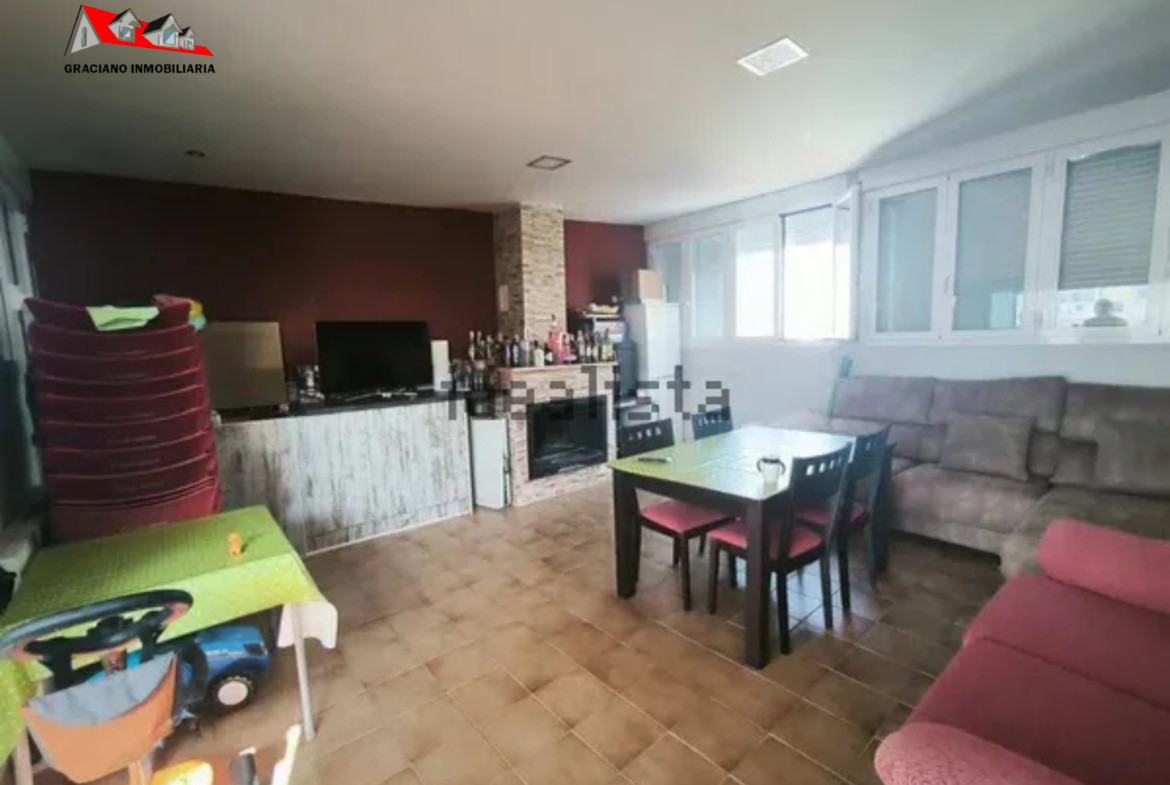 Se distribuye en gran salón-comedor, 2 dormitorios con armarios empotrados, cocina amueblada con lavadero y 2 cuartos de baños completos, terraza cerrada con chimenea, barbacoa y aire acondicionado de 20 m2 aproximadamente, desde la terraza se puede acceder a un solarium de unos 50 m2 aproximadamente.