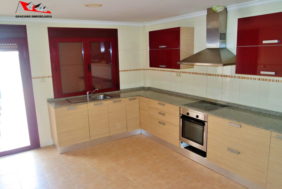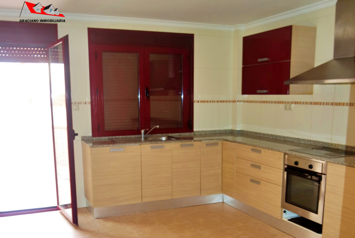 1ª Planta: Encontramos un salón-comedor amplio, cuarto de baño con ducha completo, cocina amueblada y equipada con salida a un gran patio de unos 45 m2.