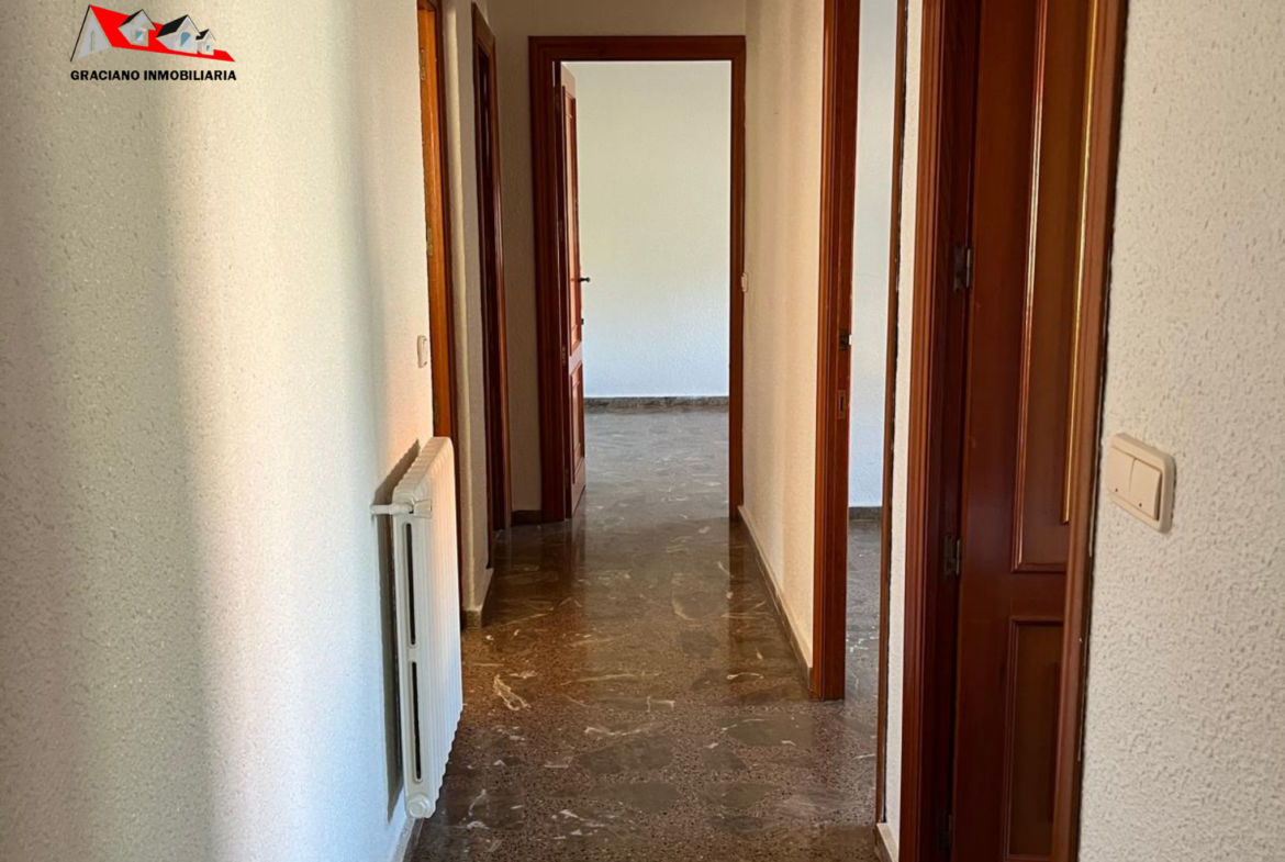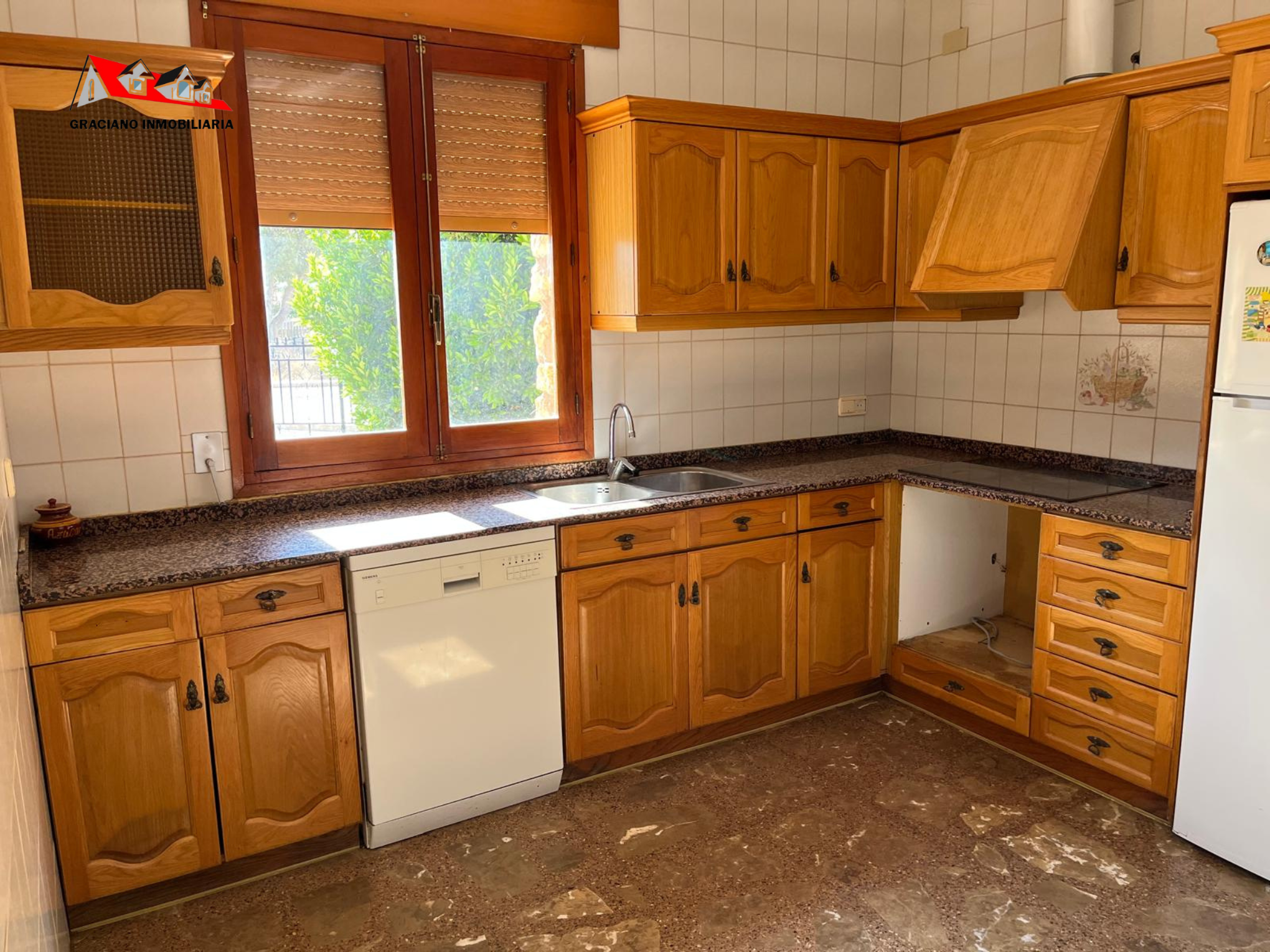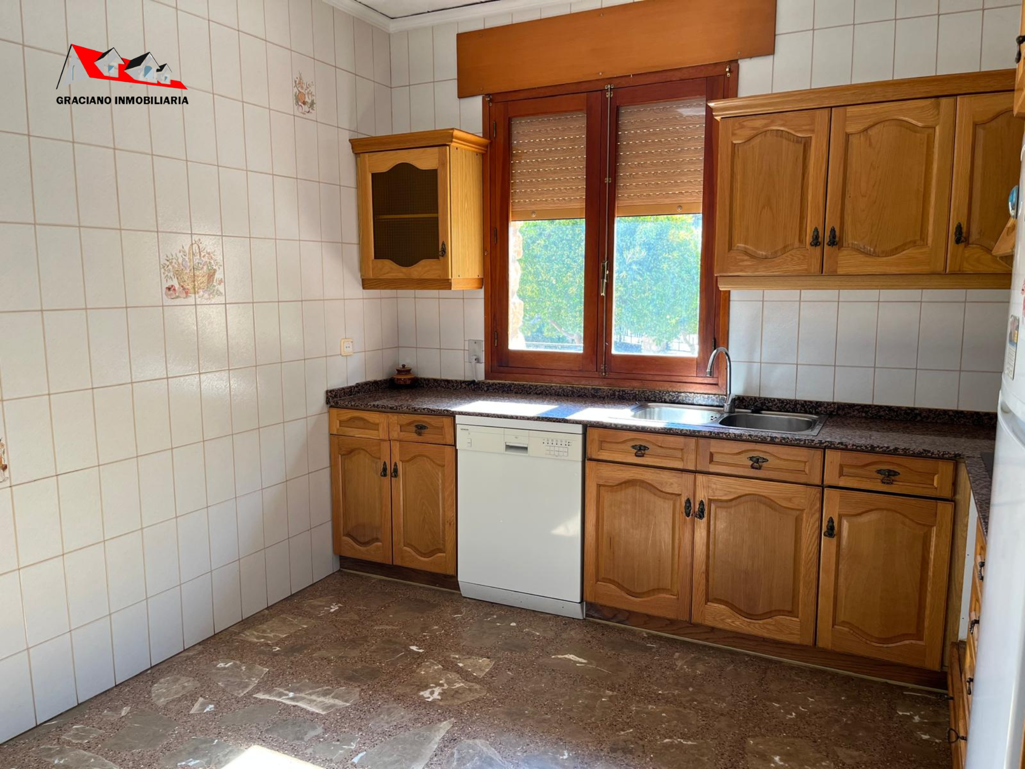 Se distribuye en entrada a un hall donde encontramos un salón de unos 25 m² con chimenea, 4 amplias habitaciones contando con una de ellas con armario empotrado, 2 cuartos de baño completos, cocina grande con despensa.