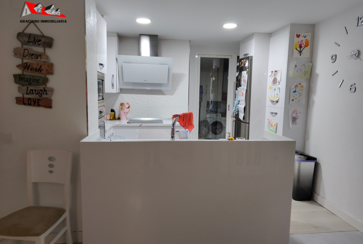 La vivienda cuenta con 110 m², distribuidos en un amplio salón-comedor con cocina moderna abierta, 3 dormitorios dobles con armarios empotrados, cocina amueblada y equipada con pequeña galería y 1 cuarto de baño completo con amplia ducha, totalmente reformado.
