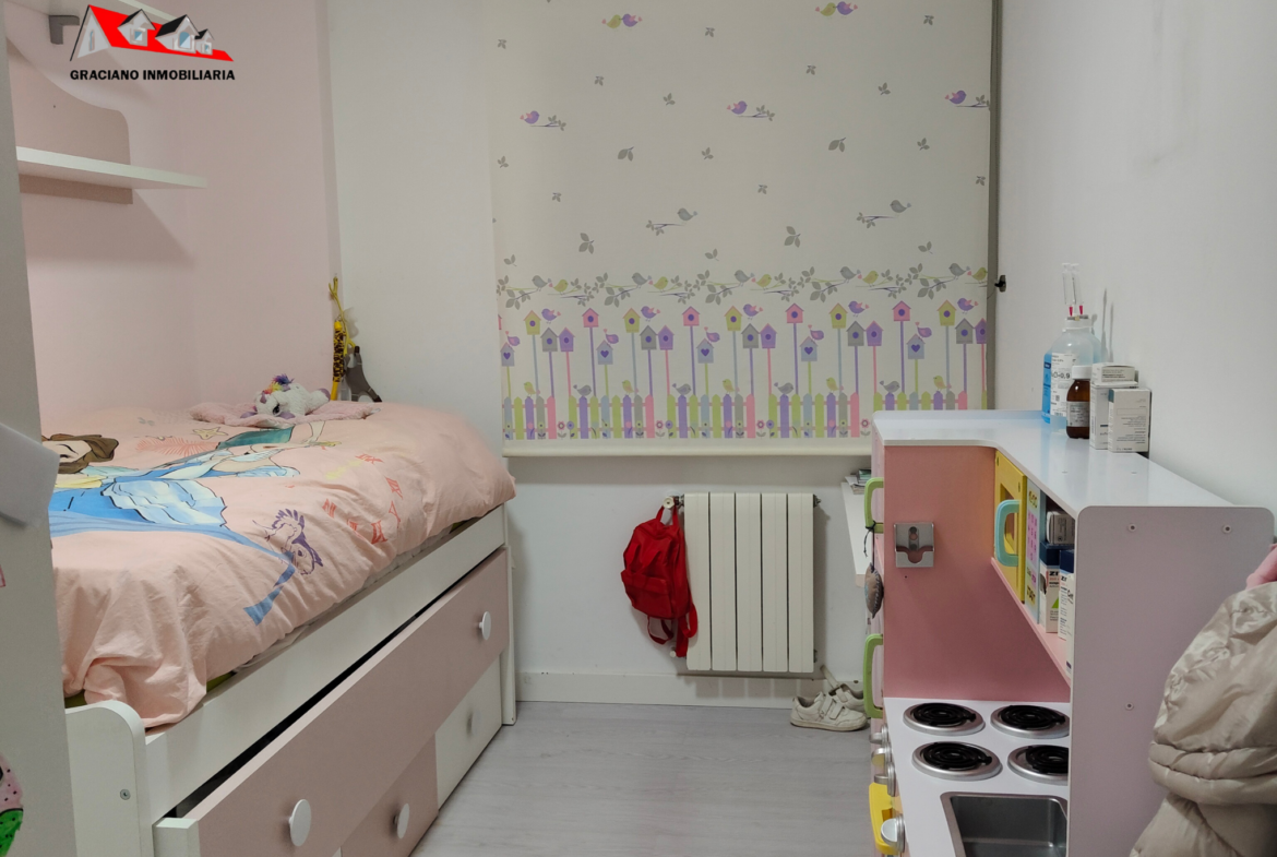 También dispone de calefacción individual con gas ciudad y aire acondicionado con bomba de frío y calor en el salón. Puertas blancas, paredes lisas, ventanas de aluminio blanco con climalit y suelo de tarima.