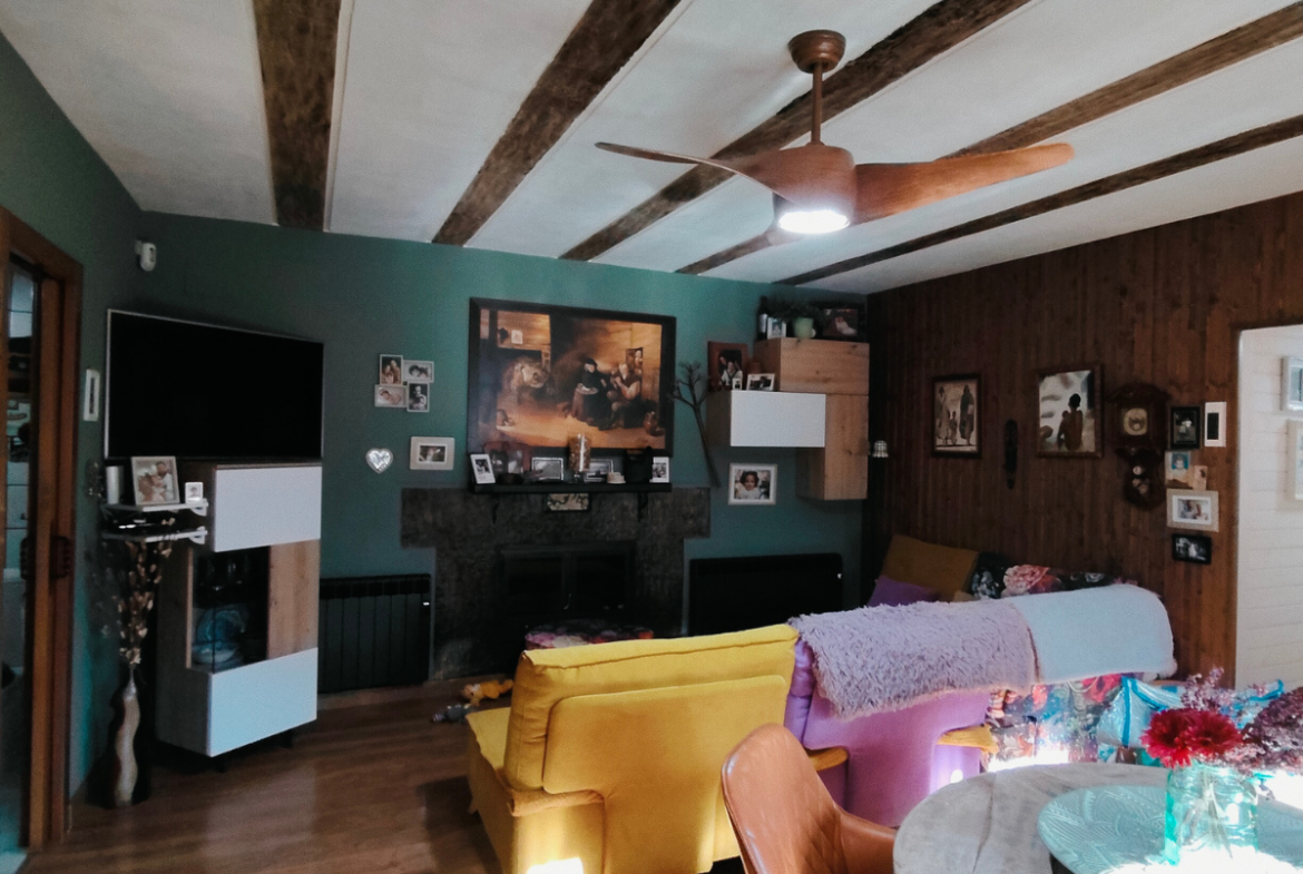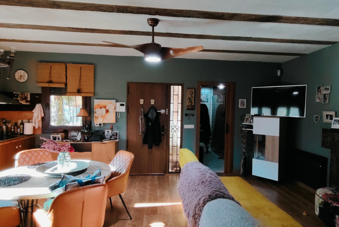 Cuenta con 1.100 m² de terreno y una vivienda de unos 120 m². La vivienda dispone de amplio salón con cocina americana y chimenea, 3 habitaciones (otra habitación junto a la principal, de vestidor) y un cuarto de baño completo con gran ducha.