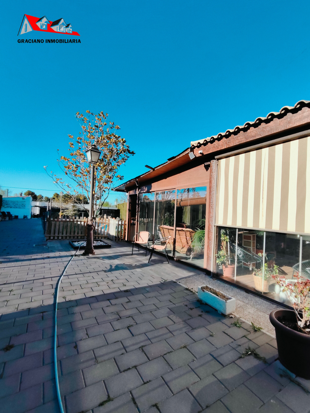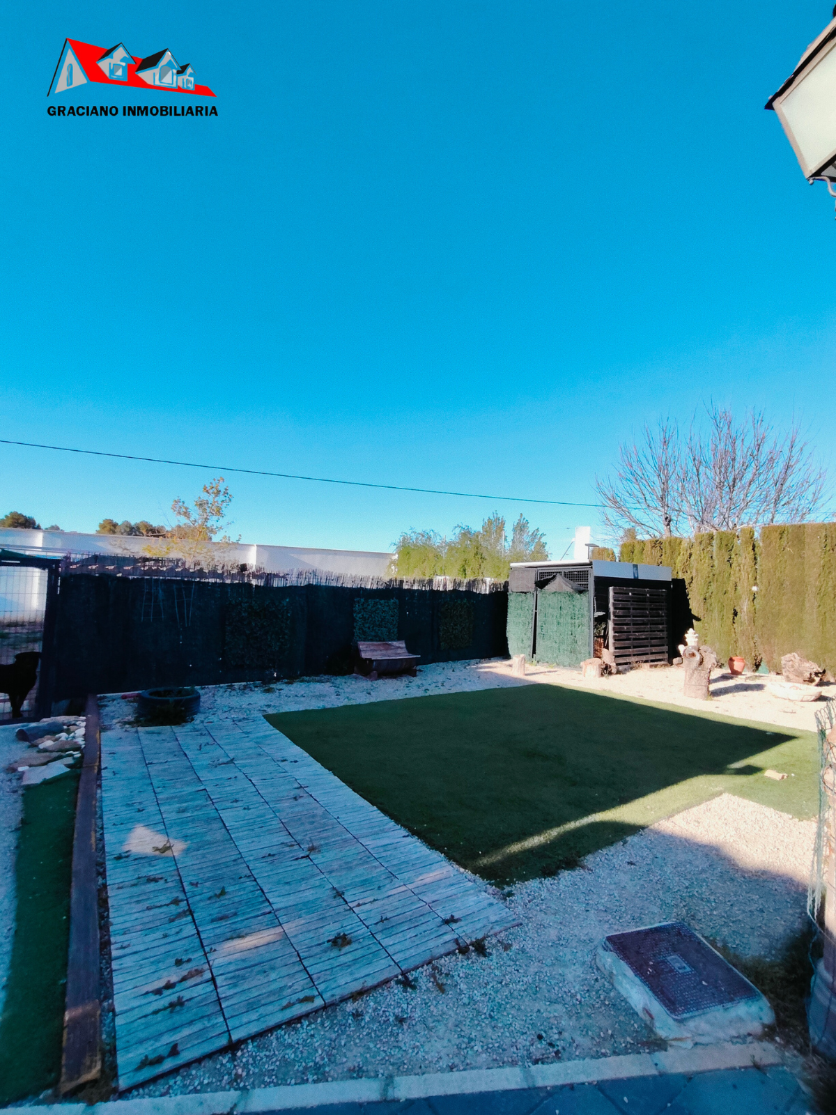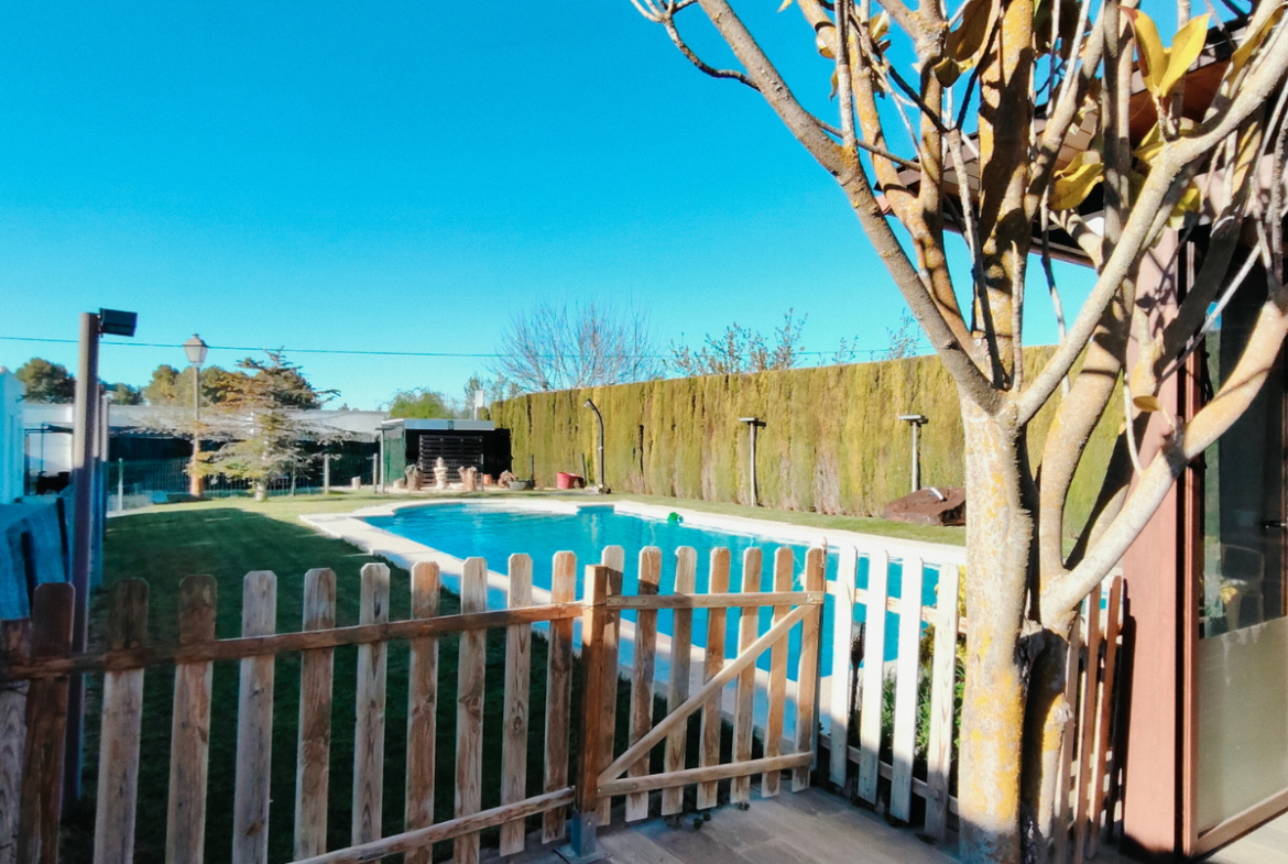 La parcela está totalmente acondicionada, con jardín y césped natural con riego automático, y equipada con placas solares, descalcificador, aislamiento térmico y acústico, ventanas PVC/climalit con mosquiteras, toldos automáticos, calefacción y termo eléctrico. Dispone además de videoportero, rejas de forja, puerta de entrada automática, persianas motorizadas, y se encuentra completamente vallada, lista para entrar a vivir.