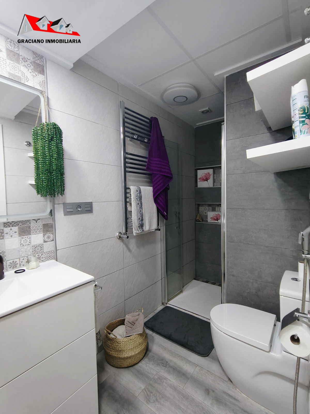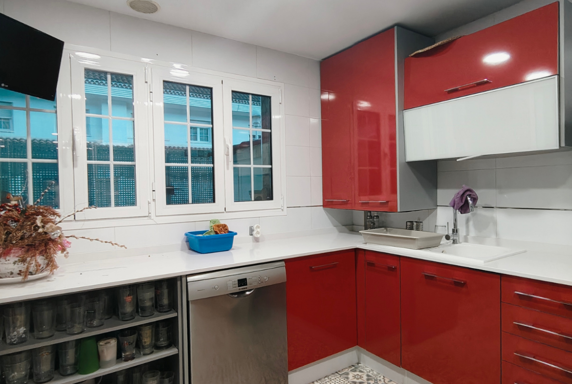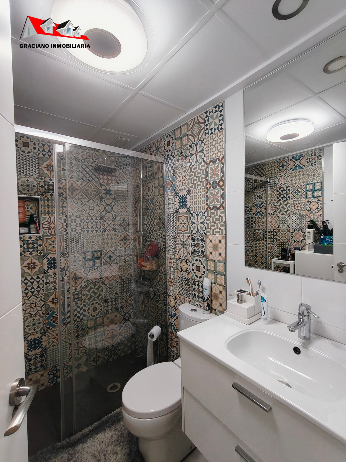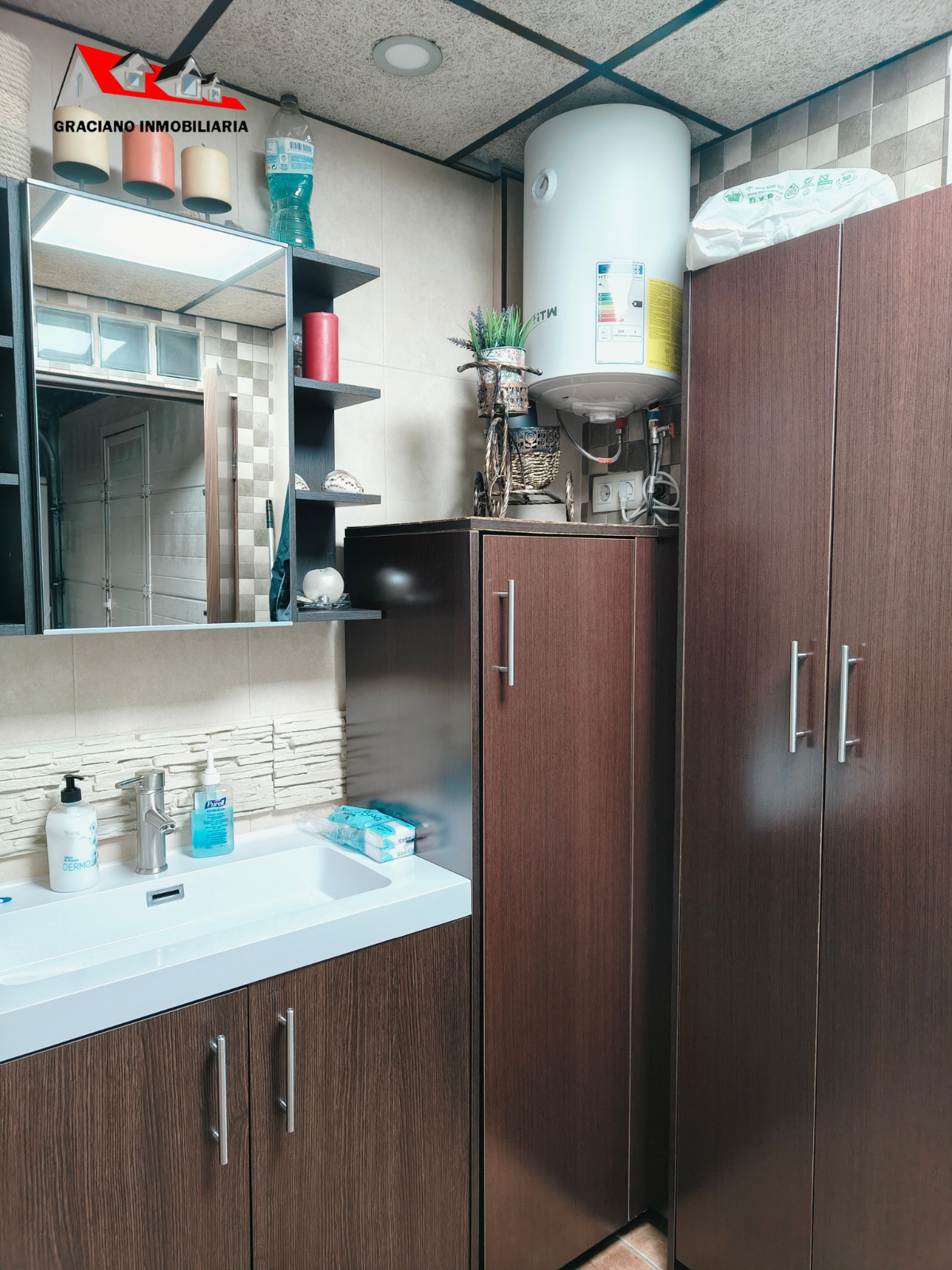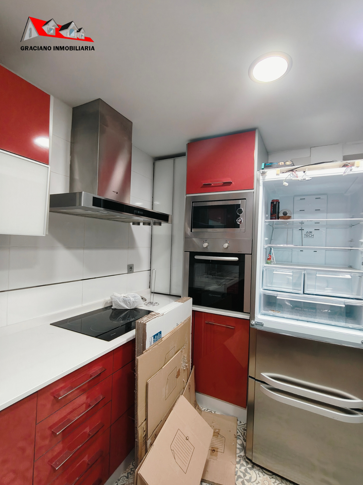 Calefacción individual con gas natural, suelo porcelanico imitacion a tarima, puertas blancas y ventanas de climalit.