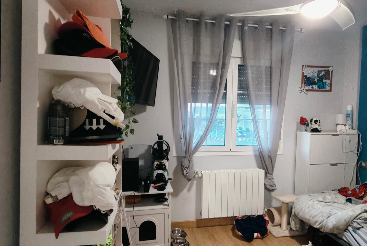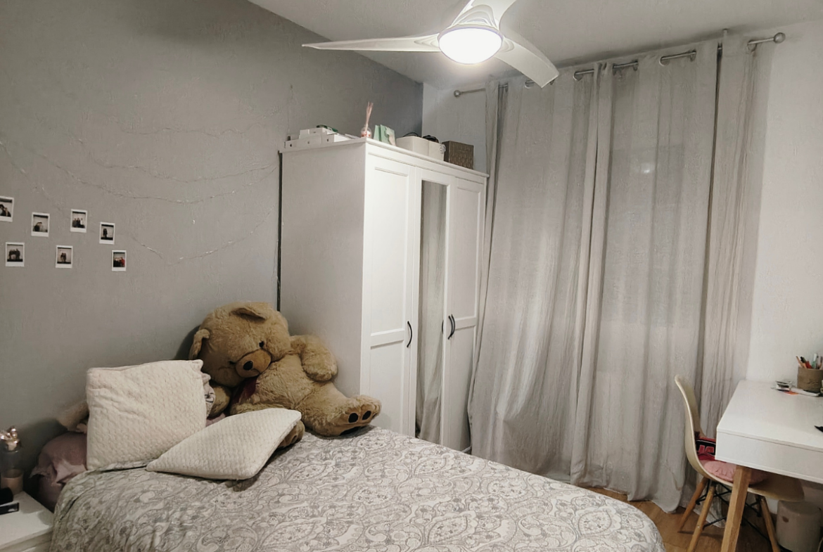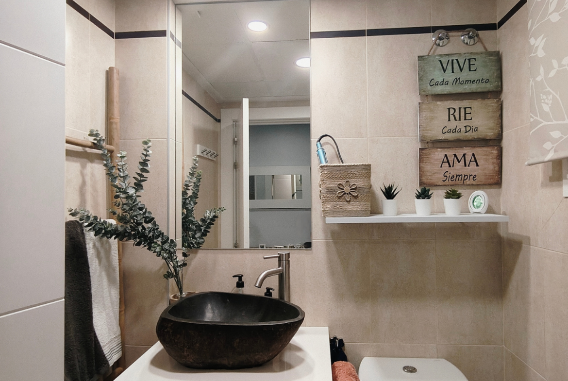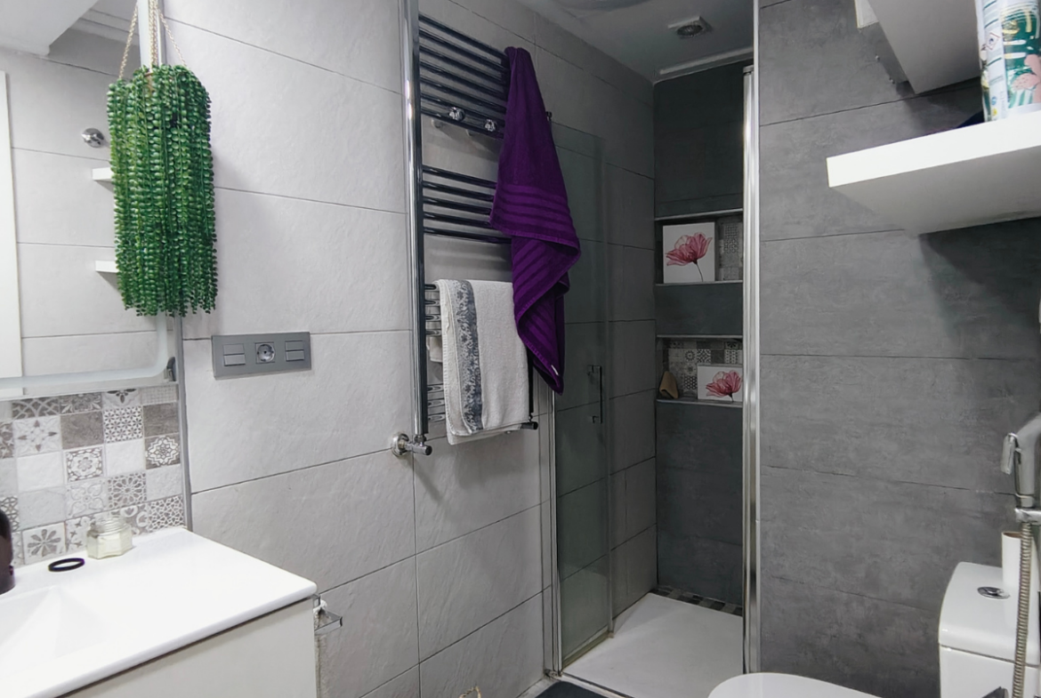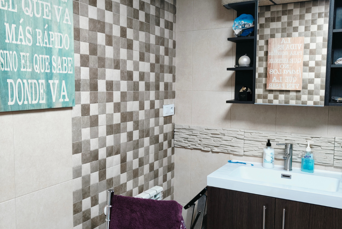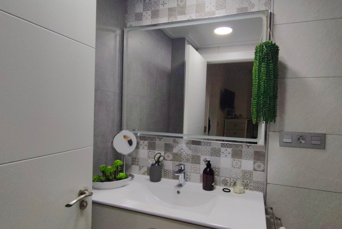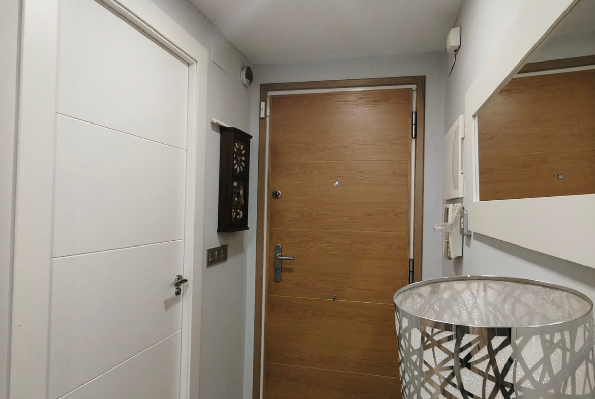 Calefacción individual con gas natural, suelo porcelanico imitacion a tarima, puertas blancas y ventanas de climalit.