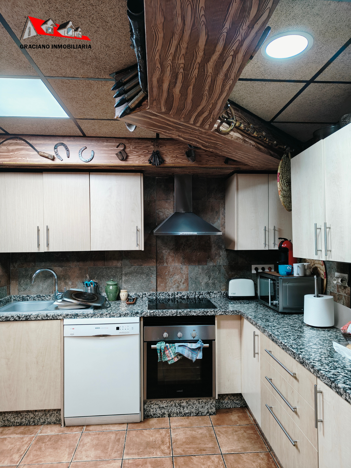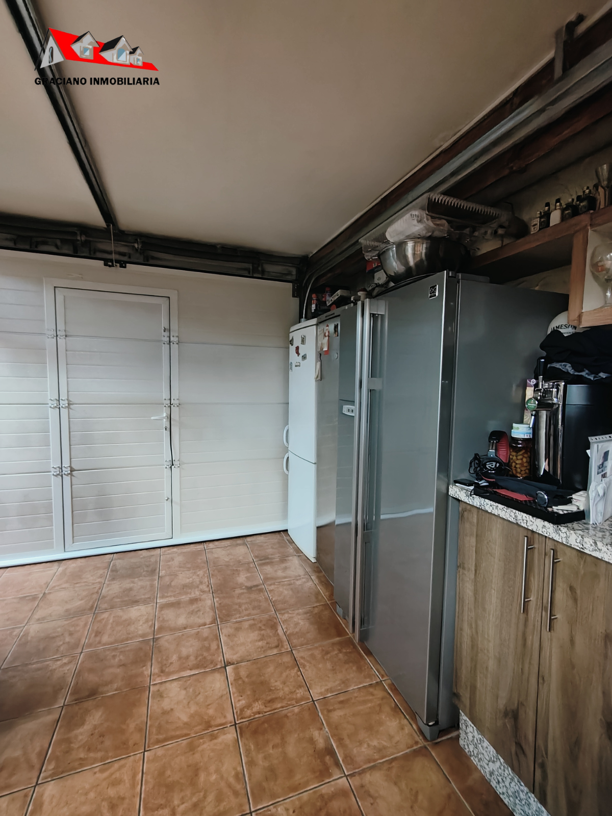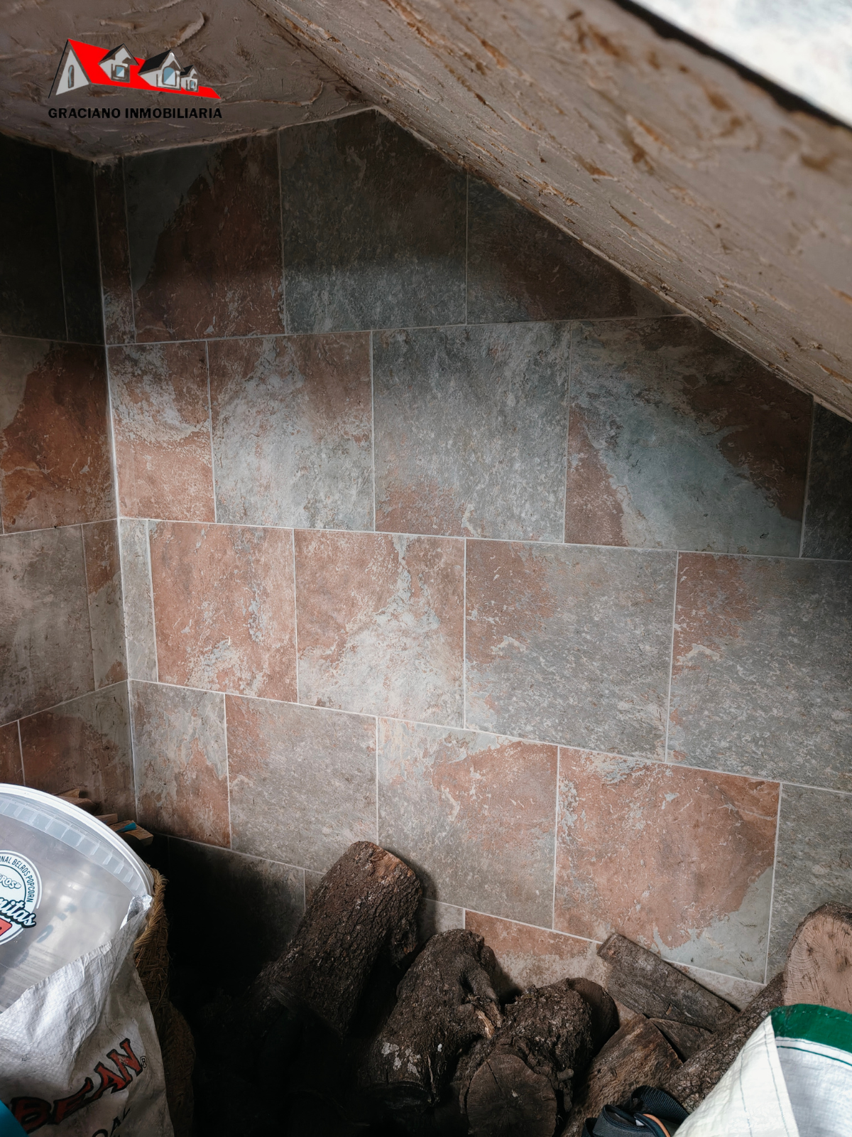 La vivienda se distribuye en sótano con garaje, acondicionado en un salón con chimenea, horno de leña, cocina amueblada y un aseo.