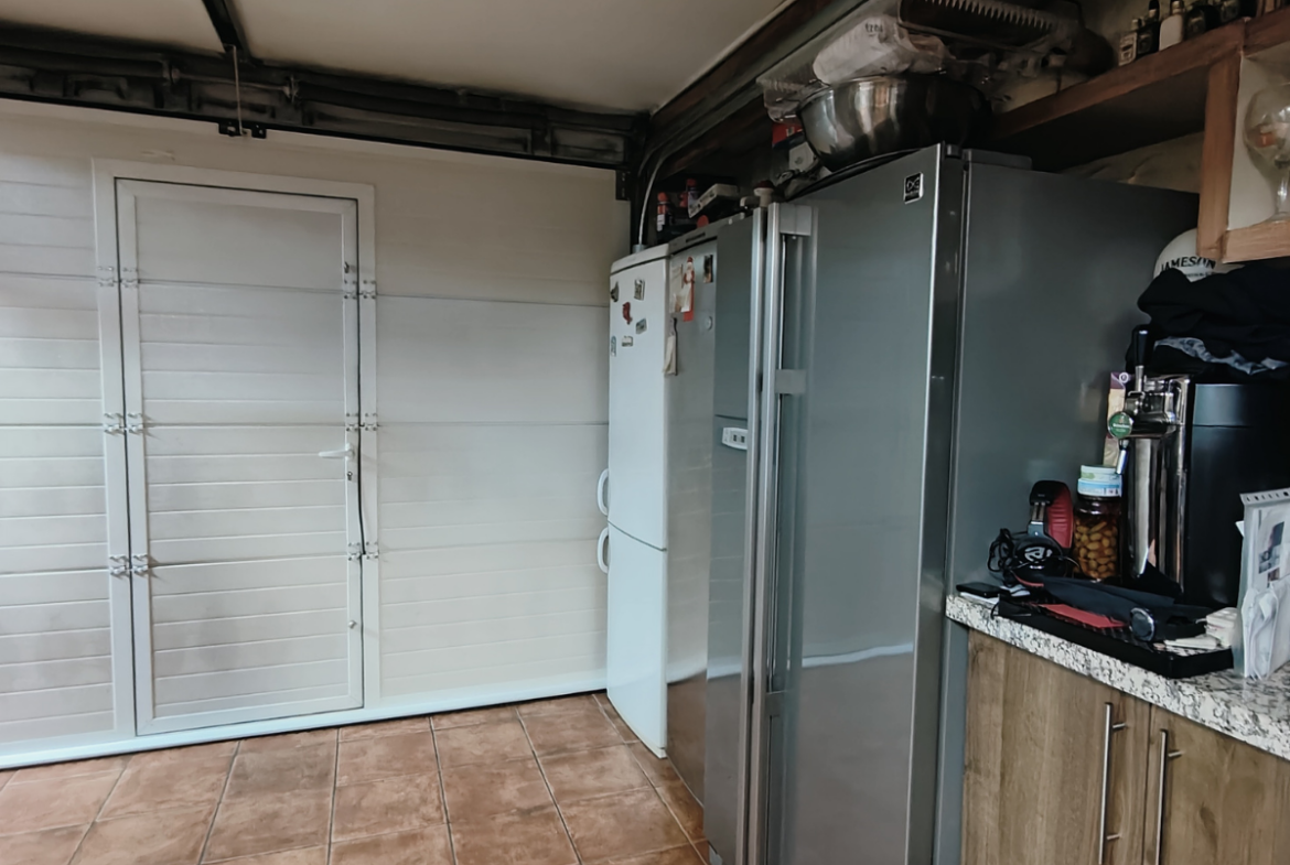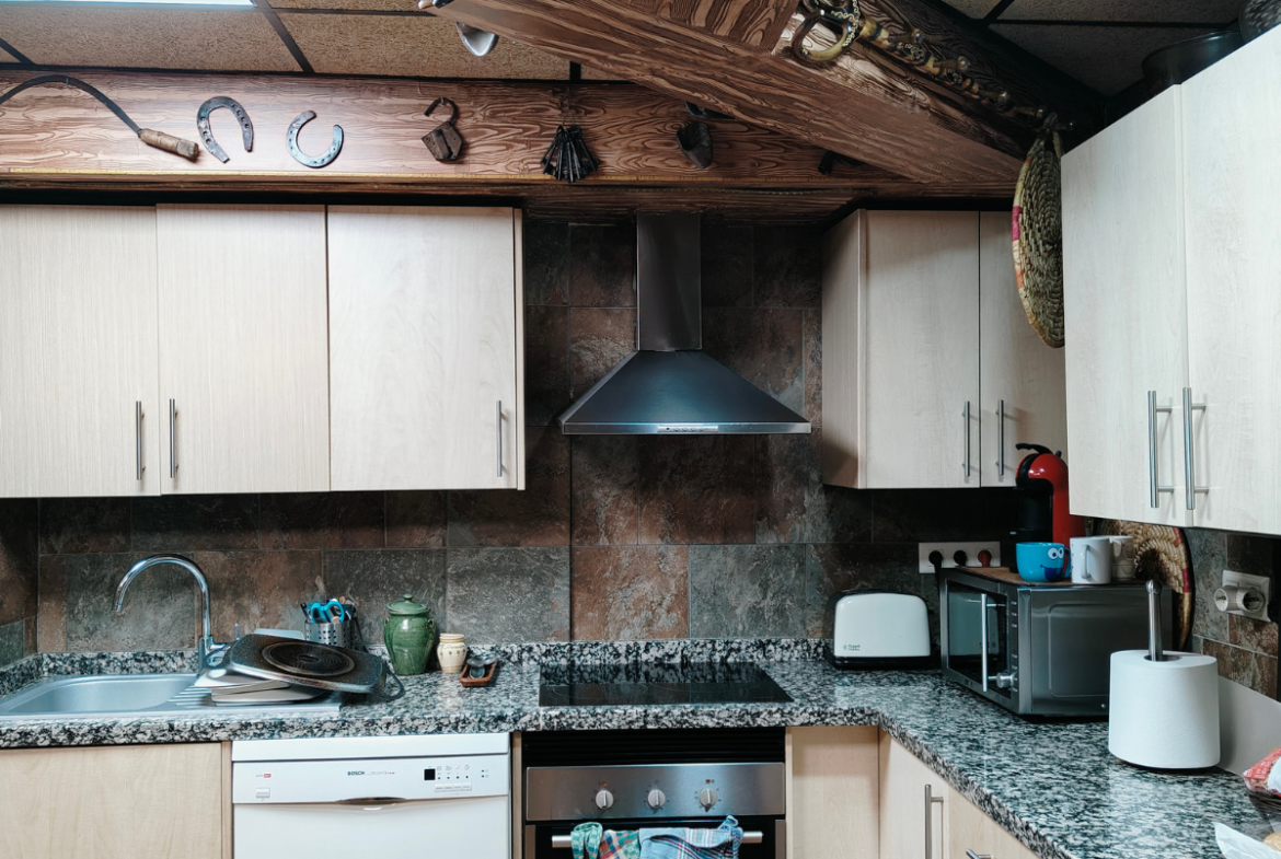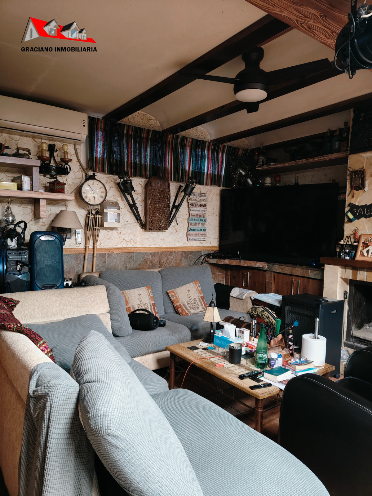 La vivienda se distribuye en sótano con garaje, acondicionado en un salón con chimenea, horno de leña, cocina amueblada y un aseo.
