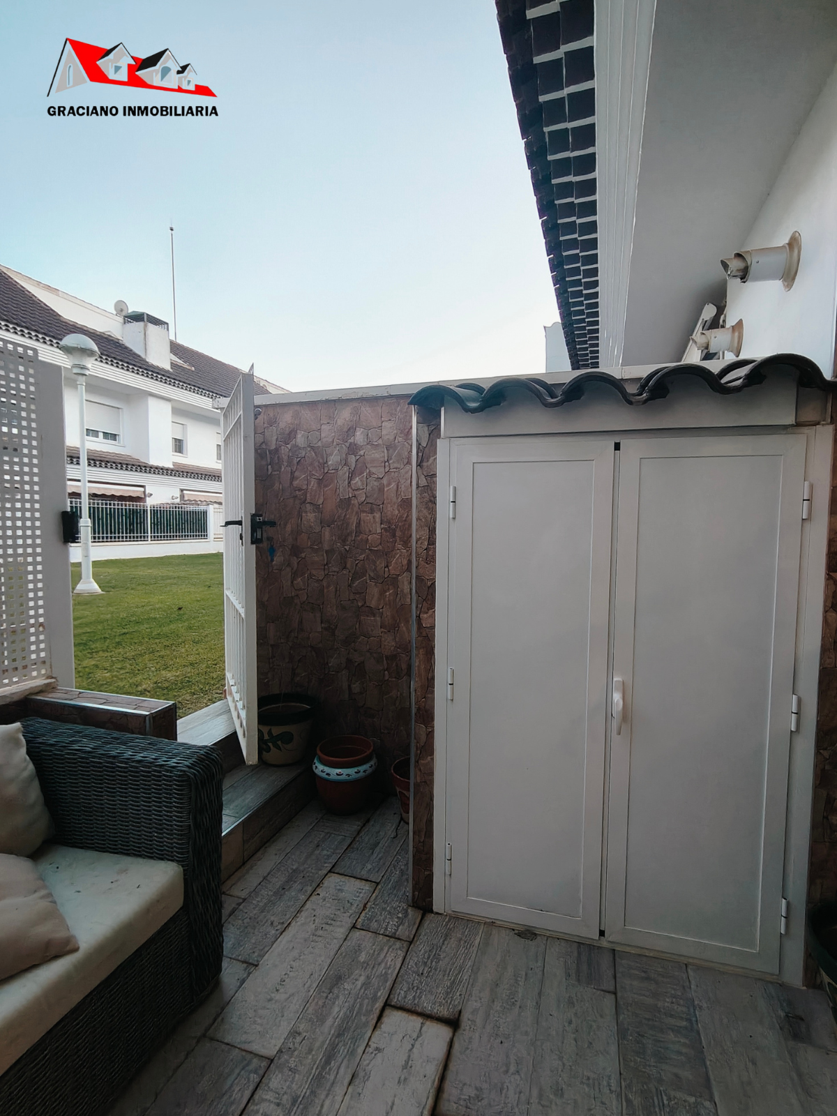 En la 1º planta nos encontramos un salón-comedor, un cuarto de baño y cocina amueblada y equipada con salida a una terraza de uso propio y al jardín con piscina comunitaria.