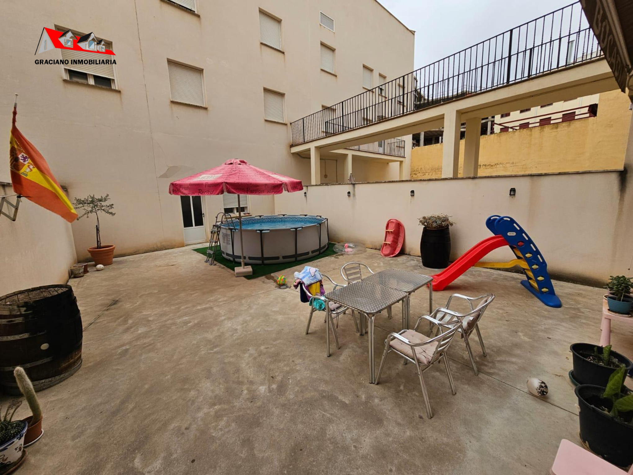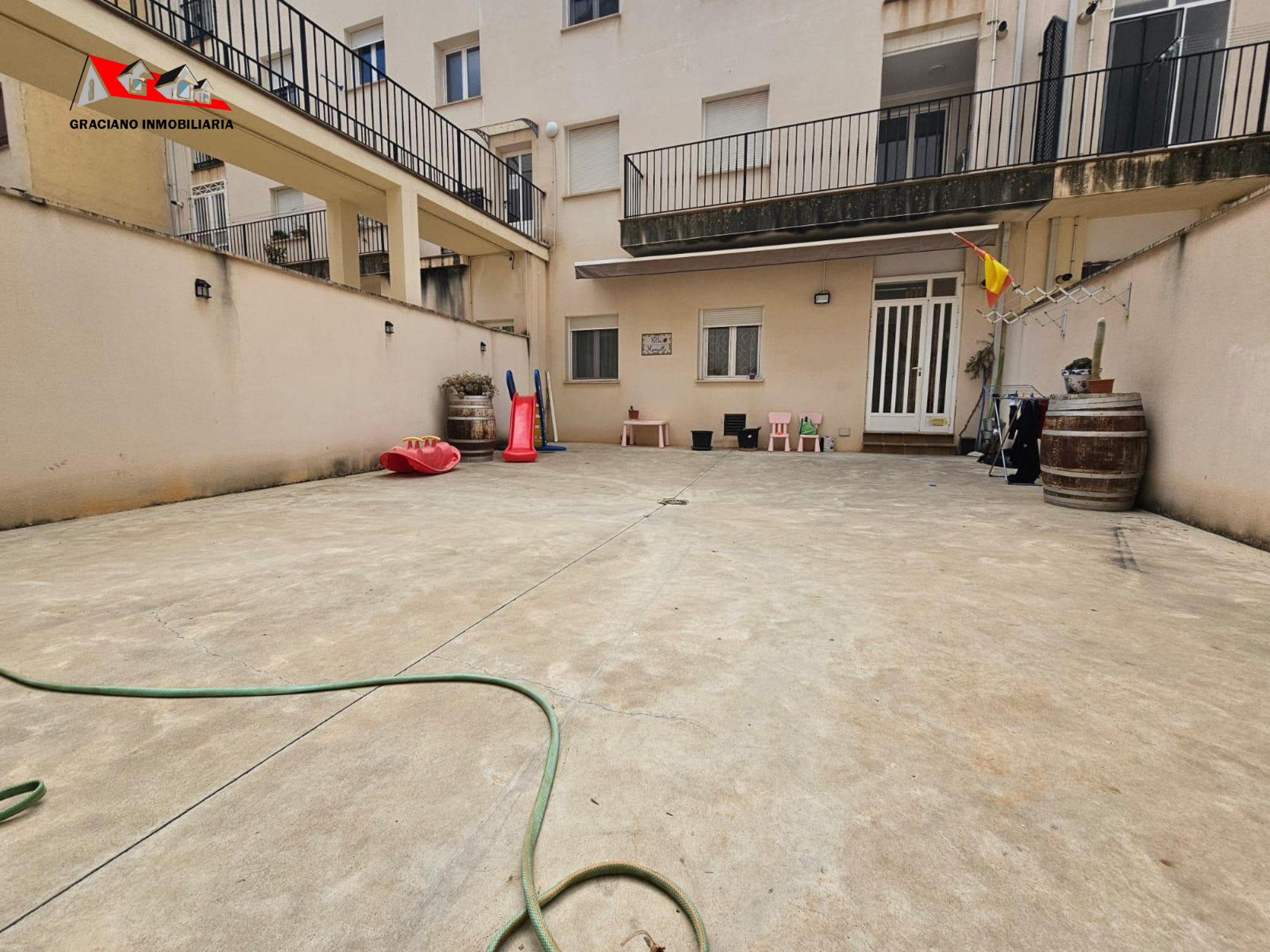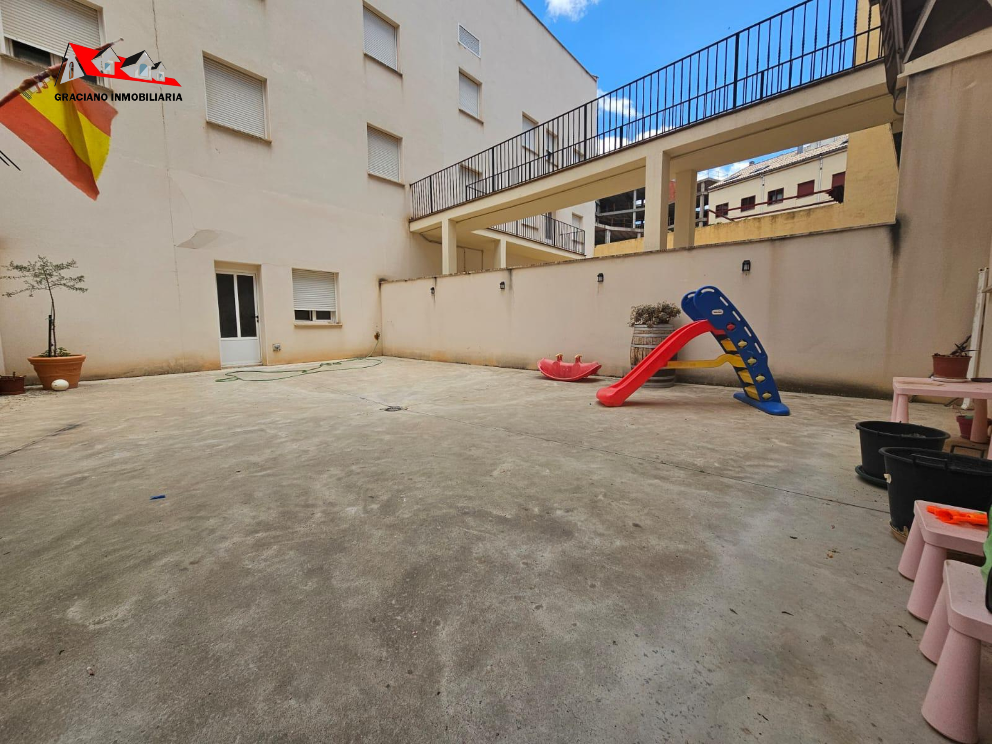 GRACIANO INMOBILIARIA vende piso bajo en Av. de Levante. Se distribuye en amplio salon-comedor, 3 habitaciones dobles con armarios empotrados, cocina amueblada y equipada con galería, 2 cuartos de baños completos, uno de ellos suite. También dispone de una gran terraza privada de unos 75 m2 aproximadamente y un trastero de 40 m2. Calefacción individual, ventanas de climalit con mosquiteras. Plaza de garaje. Honorarios de inmobiliaria no incluidos.