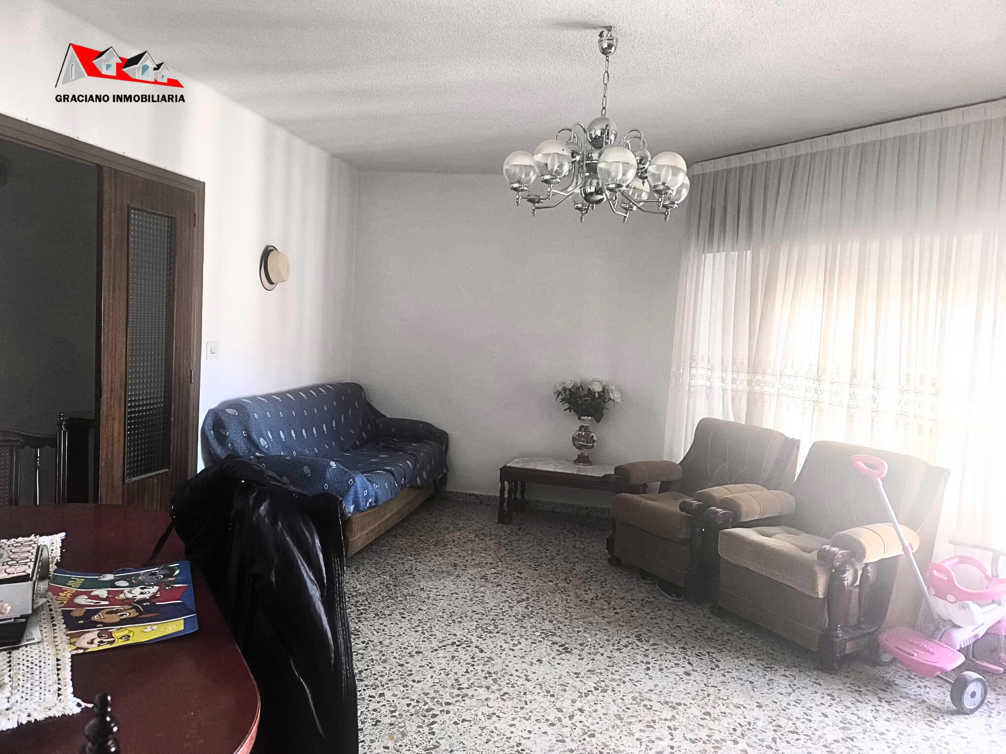 La vivienda se distribuye en salón-comedor con balcón al exterior, 4 dormitorios con armarios empotrados, cocina amueblada y equipada con salida a una terraza y galería, también cuenta con un cuarto de baño completo y un aseo.